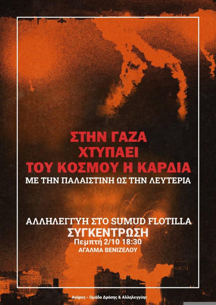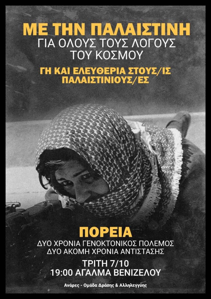 Συγκέντρωση αλληλεγγύης στον παλαιστινιακό λαό, Τρίτη 7/10, 19:00, Άγαλμα Βενιζέλου