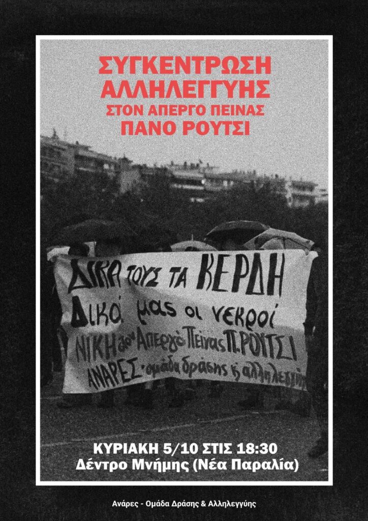 ΣΥΓΚΕΝΤΡΩΣΗ ΑΛΛΗΛΕΓΓΥΗΣ ΣΤΟΝ ΑΠΕΡΓΟ ΠΕΙΝΑΣ ΠΑΝΟ ΡΟΥΤΣΙ , KYΡΙΑΚΗ 5/10, ΔΕΝΤΡΟ ΜΝΗΜΗΣ, ΝΕΑ ΠΑΡΑΛΙΑ, 18:30