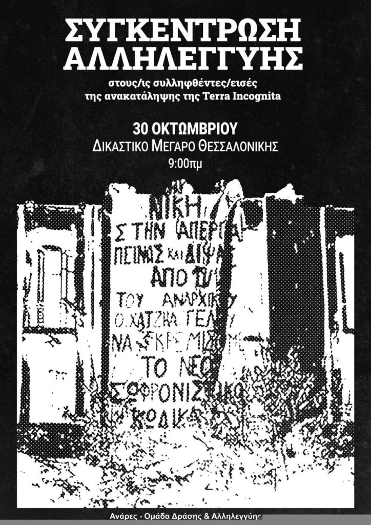 Συγκέντρωση αλληλεγγύης στους/στις συλληφθέντες/συλληφθείσες από την ανακατάληψη της Terra incognita , 30/10, 9:00 Δικαστήρια