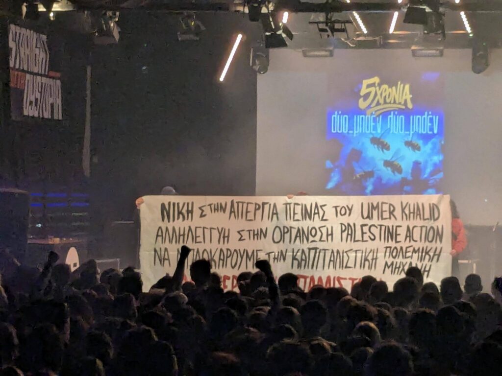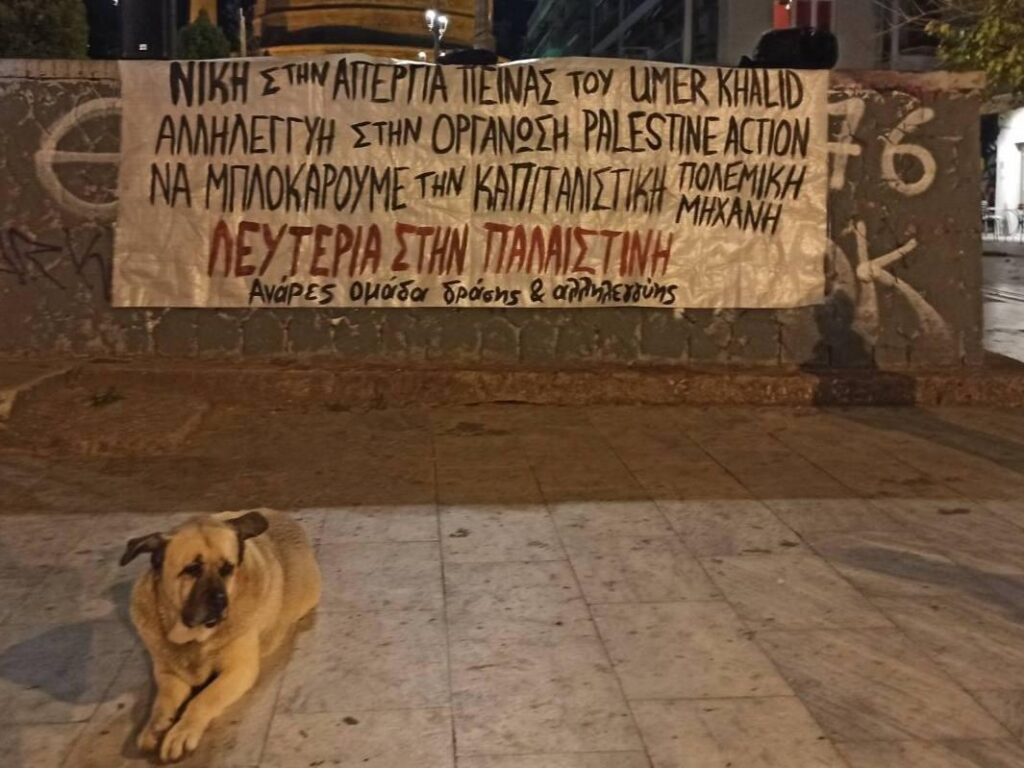 Χθες 17/1 στα πλαίσια αλληλεγγύης στην οργάνωση Palestine Action και στον πολιτικό κρατούμενο και απεργό πείνας Umer Khalid, πραγματοποιήσαμε συγκέντρωση στην Κάμαρα και παρέμβαση στο λάιβ των δύο μηδέν δύο μηδέν. Η Palestine Action και το κίνημα αλληλεγγύης στην Παλαιστίνη πέτυχε μια μεγάλη νίκη με την ακύρωση της σύμβασης 2 δισ. λιρών που θα υπέγραφε το βρετανικό κράτος με την Elbit Systems, τη μεγαλύτερη εταιρεία κατασκευής όπλων με έδρα το Ισραήλ. Να σταθούμε αλληλέγγυες στους κρατούμενους αγωνιστές και αγωνίστριες της Palestine Action, οι οποίες διώκονται από το βρετανικό κράτος με την κατηγορία της τρομοκρατίας καθώς και στον απεργό πείνας Umer Khalid.