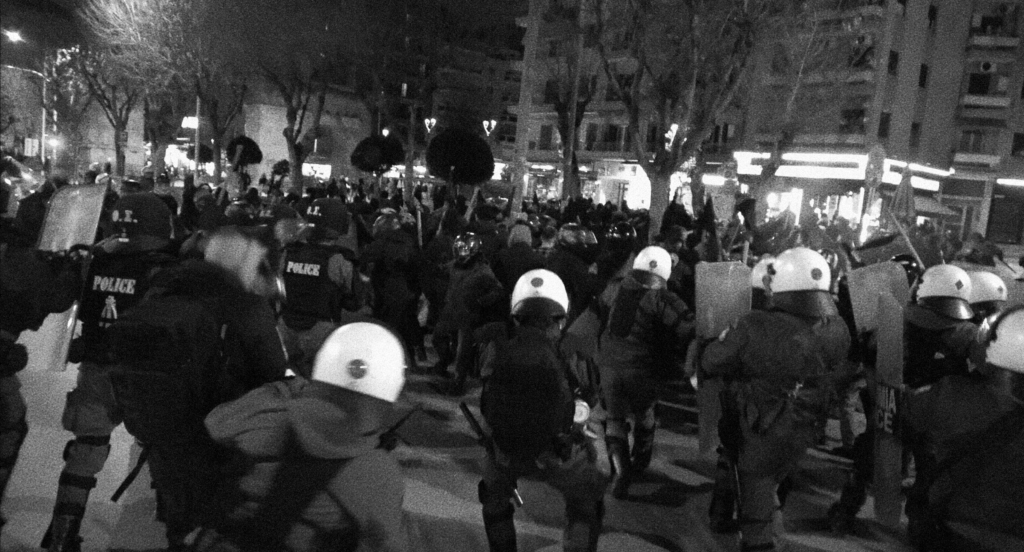 Λίγο πριν την λήξη της πορείας φτάνοντας στην Καμάρα, οι δυνάμεις καταστολής ήρθαν κοντά στο σώμα της πορείας σπρώχνοντας και προκαλώντας, με εμφανή πρόθεση το σπάσιμό της, το οποίο και έκαναν τελικά με χημικά, κρότου λάμψεις και έπειτα γκλομπιές και κλωτσιές στο σορό. Ο κόσμος της πορείας στάθηκε με μεγάλη αξιοπρέπεια απέναντι στους μπάτσους, οι οποίοι πραγματοποιήσαν τέσσερις συλλήψεις συντροφισσών και συντρόφων, ενώ επίσης υπήρξαν και τραυματίες από τη δράση των μπάτσων.